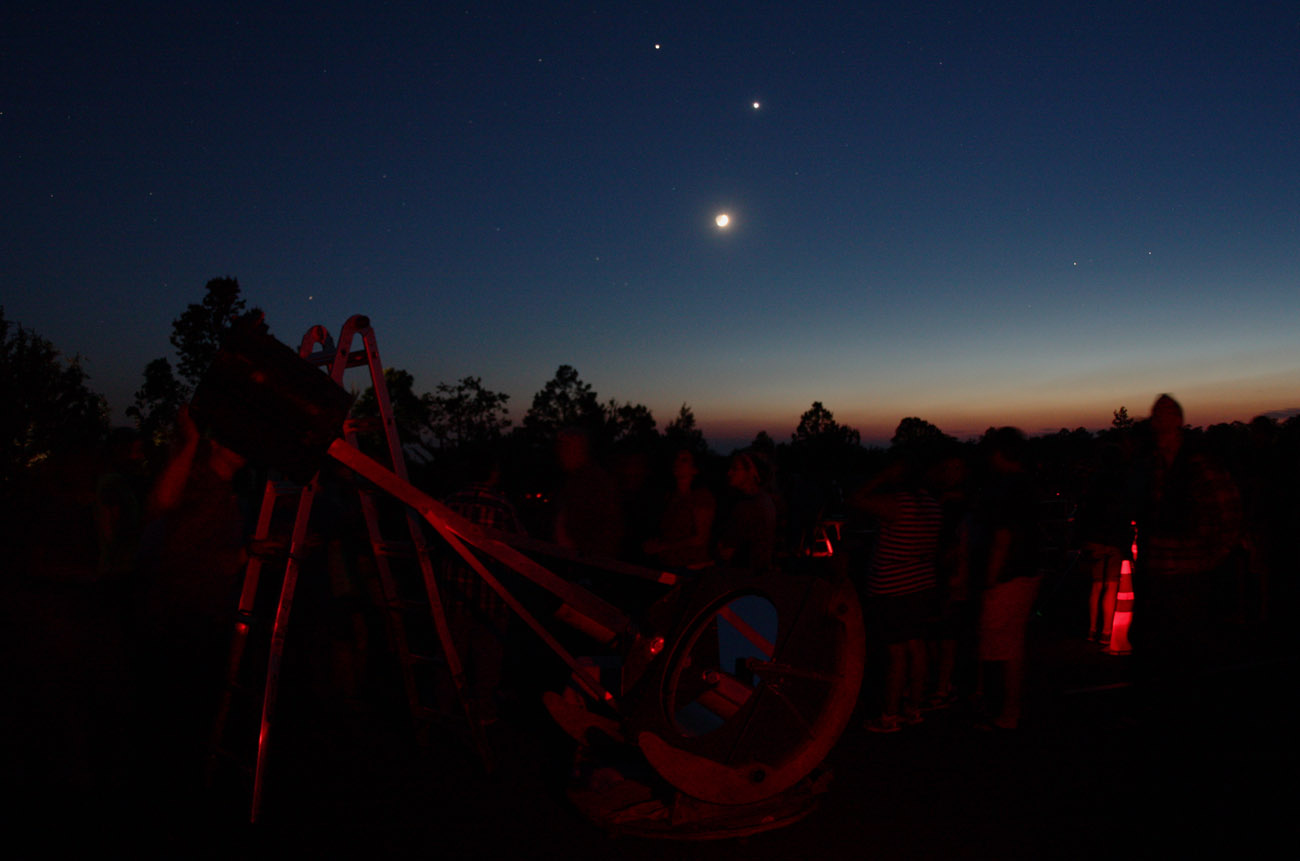 Finally the last evening of the star party approached. I finally stepped up and set up my Celestron 14", going to the site early to get it installed well before the 7pm Otterpops meeting. Tonight I was joined by buddy Chuck Schroll! We had texted the night before - he had flown his plane down to the Bryce Canyon National Park's astronomy event for the weekend (Chuck has been spending the summer at Badlands National Park as their Summer astronomer). I offered to pick him up if he flew over the Canyon and he accepted! So we worked together to handle the big rush of crowds that started as soon as we picked up our first object - the moon. It didn't slow down for hours, so was great to have a partner to get a break once in a while.